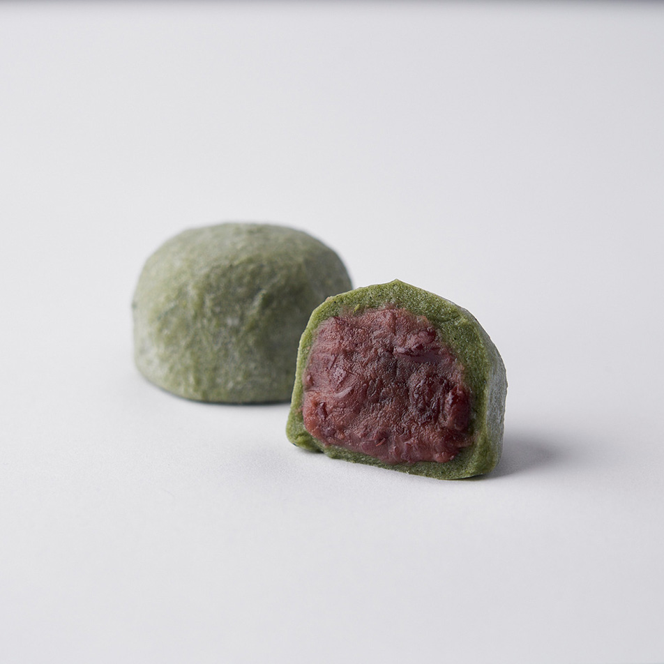 草餅のために炊き上げた北海道産小豆を、絹のなめらかさを持つ滋賀羽二重糯米を使用した大福生地で包みました。 雪解け水の注ぐ豊かな土壌で芽吹く自家栽培のよもぎ。その凛とした香りが自慢の草もちです。