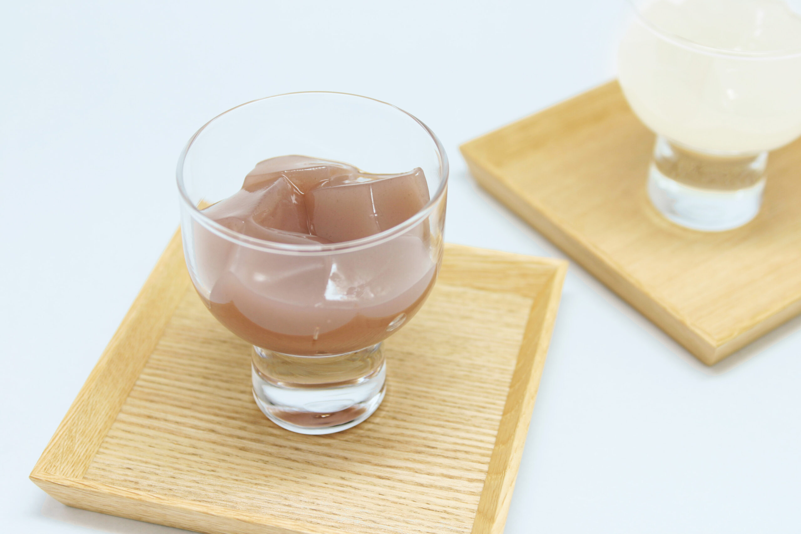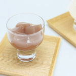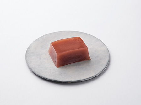 ぷるぷるとした独特の食感とつるんとした喉ごし。つややかな透明感と素材の色味が美しい吉野葛入りの水羊羹です。