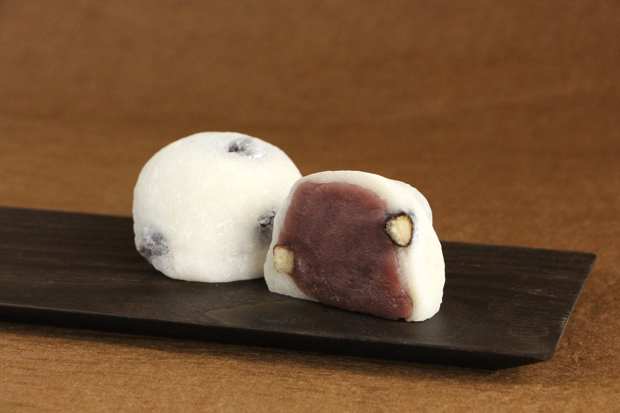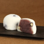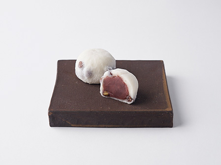 ほんのり塩味をきかせた赤えんどう豆とあっさりなめらかなこしあんの相性が抜群。きめ細かくコシのある生地は滋賀羽二重糯米ならではの食感です。