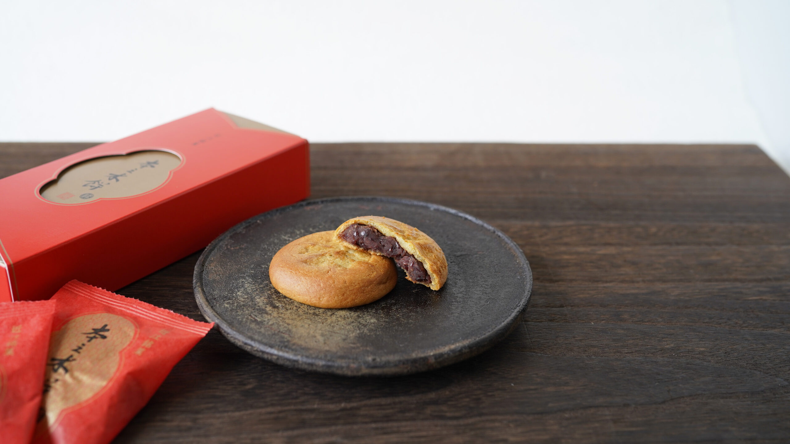 沖縄県産黒糖蜜入りの粒あんを餅粉入りの生地で包んだ定番の焼き饅頭。「ほんのきもち」と読み替えて贈る気持ちを運びます。