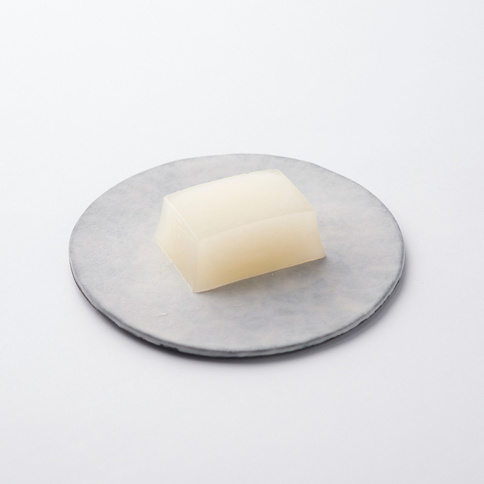 ぷるぷるとした独特の食感とつるんとした喉ごし。つややかな透明感と素材の色味が美しい吉野葛入りの水羊羹です。