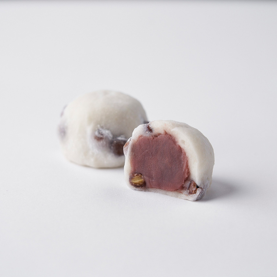 ほんのり塩味をきかせた赤えんどう豆とあっさりなめらかなこしあんの相性が抜群。きめ細かくコシのある生地は滋賀羽二重糯米ならではの食感です。